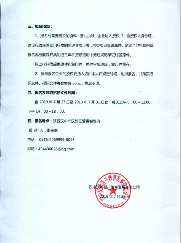 2、參與報(bào)名企業(yè)的授權(quán)委托人須由本人在規(guī)定時(shí)間、地點(diǎn)報(bào)名,并購(gòu)買招標(biāo)文件。招標(biāo)文件每套售價(jià)50元,售后不退。
