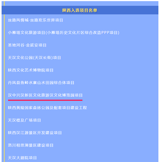 近日,文化和旅游部、國家開發(fā)銀行、中國進(jìn)出口銀行、中國農(nóng)業(yè)發(fā)展銀行、中國工商銀行、中國銀行、中國光大銀行等7家單 位聯(lián)合公布了全國文化和旅游投融資項(xiàng)目遴選結(jié)果,旨在做好文化和旅游領(lǐng)域“六穩(wěn)”工作、落實(shí)“六保 ”任務(wù),持續(xù)拓寬融資渠道、激發(fā)投資活力、推動文化產(chǎn)業(yè)和旅游產(chǎn)業(yè)高質(zhì)量發(fā)展。陜西24個項(xiàng)目入選該榜單。
