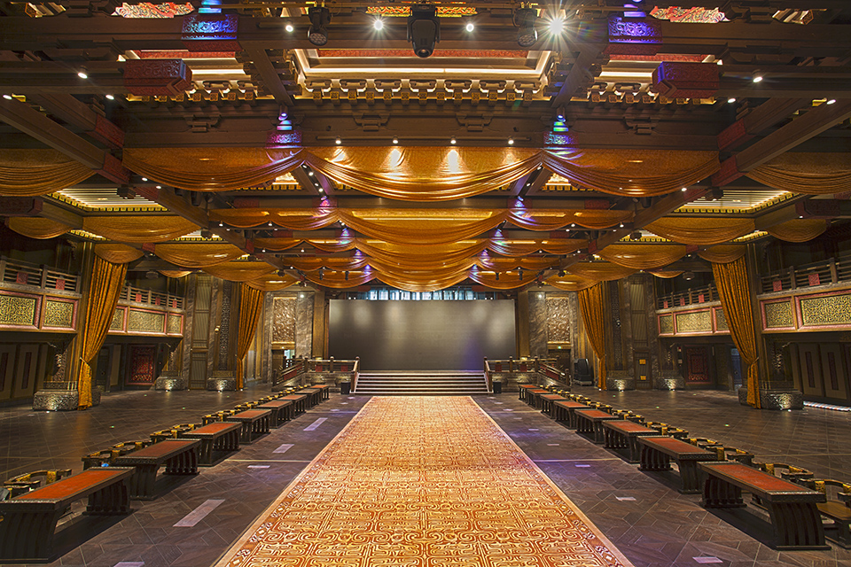 漢樂府位于漢文化博覽園的西南側(cè),用地面積約1.54萬平方米。漢樂府是作為漢文化博覽園的重要服務(wù)配套進(jìn)行設(shè)計(jì)的, 以展示漢代歌舞和宴飲文化為主要功能。它分為舞、樂、宴三個(gè)主題區(qū)域,其中“宴”主題區(qū)域用以演繹大漢傳統(tǒng)宴飲文化;“樂”主題區(qū)域作為漢樂府經(jīng)典音樂會(huì)堂,并設(shè)有包廂,不同的命名代表不同地方風(fēng)格;“舞”主題區(qū)域?qū)⒆鳛榇笮臀幕黝}歌舞盛宴使用。