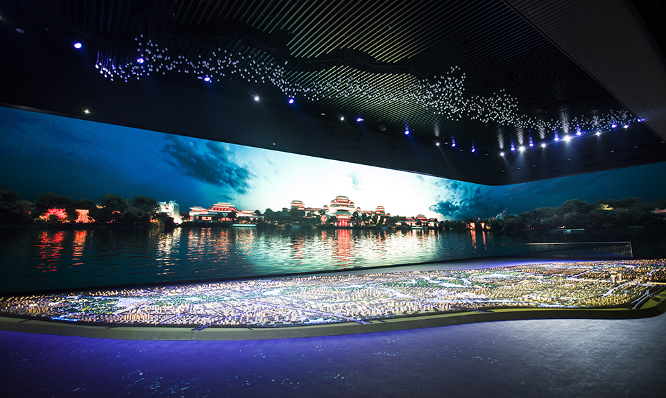其中歷史博物館、城市建設(shè)館、未來體驗(yàn)館,分別代表“過去、現(xiàn)在、未來”。歷史博物 館以“水”為主題,引導(dǎo)游客穿越以石門十三品為代表的水下甬道,以此體驗(yàn)漢中歷史文化的厚重,感受大漢文明的輝煌。