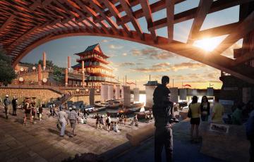 八大渡口以漢水流域的八個古城命名,體現(xiàn)一千五百米漢江故事。通過各自差異化的定位和功能規(guī)劃,融旅游、文化、休閑、居住為一體。
