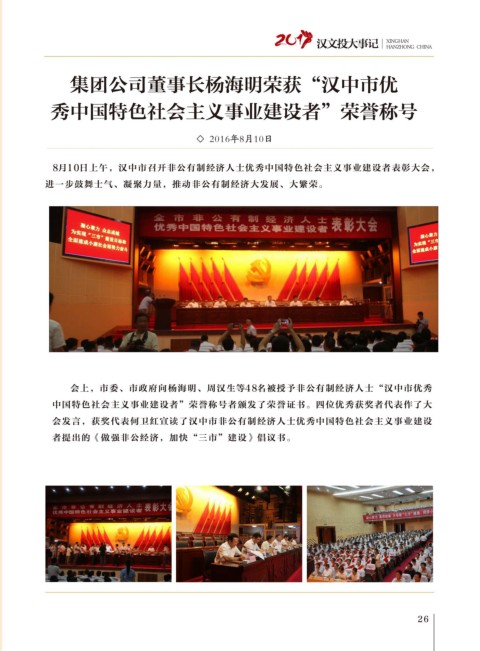 8月3日下午,中央黨校常務(wù)副校長何毅亭蒞臨漢中元漢新區(qū)建設(shè)項目視察調(diào)研。漢中 8月10日上午,漢中市召開非公有制經(jīng)濟(jì)人士優(yōu)秀中國特色社會主義事業(yè)建設(shè)者表彰大會,