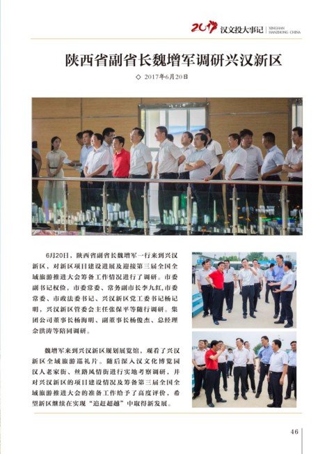 6月20日,陜西省副省長魏增軍一行來到興漢