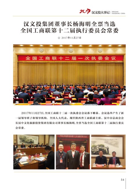 大會(huì)圍繞“攜手聚力‘絲綢之路經(jīng)濟(jì)帶’建設(shè)、貫徹落 長(zhǎng)漢中文化旅游投資集團(tuán)有限公司董事長(zhǎng)楊海明,全票當(dāng)選全國(guó)工商聯(lián)第十二屆執(zhí)行委員