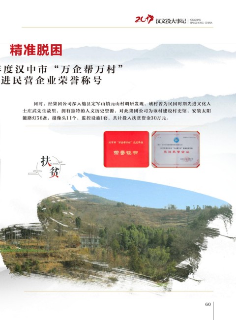 集 團 公 司 榮 獲2 0 1 7年 度 漢 中 市 “ 萬 企 幫 萬 村 ”